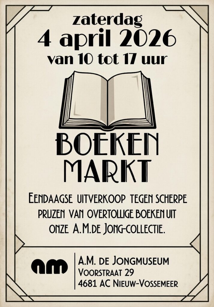 Het A.M. de Jongmuseum zal op 4 april 2026 de boeken, waarvan er in het museum meer exemplaren op voorraad zijn, verkopen tegen gunstige prijzen. Voor boekliefhebbers en vooral verzamelaars van A.M. de Jong-boeken is dit een buitenkansje.