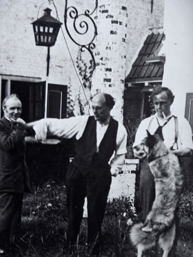 De vrienden Remiëns, Van Raemdonck en De Jong voor het huis in Halsteren.